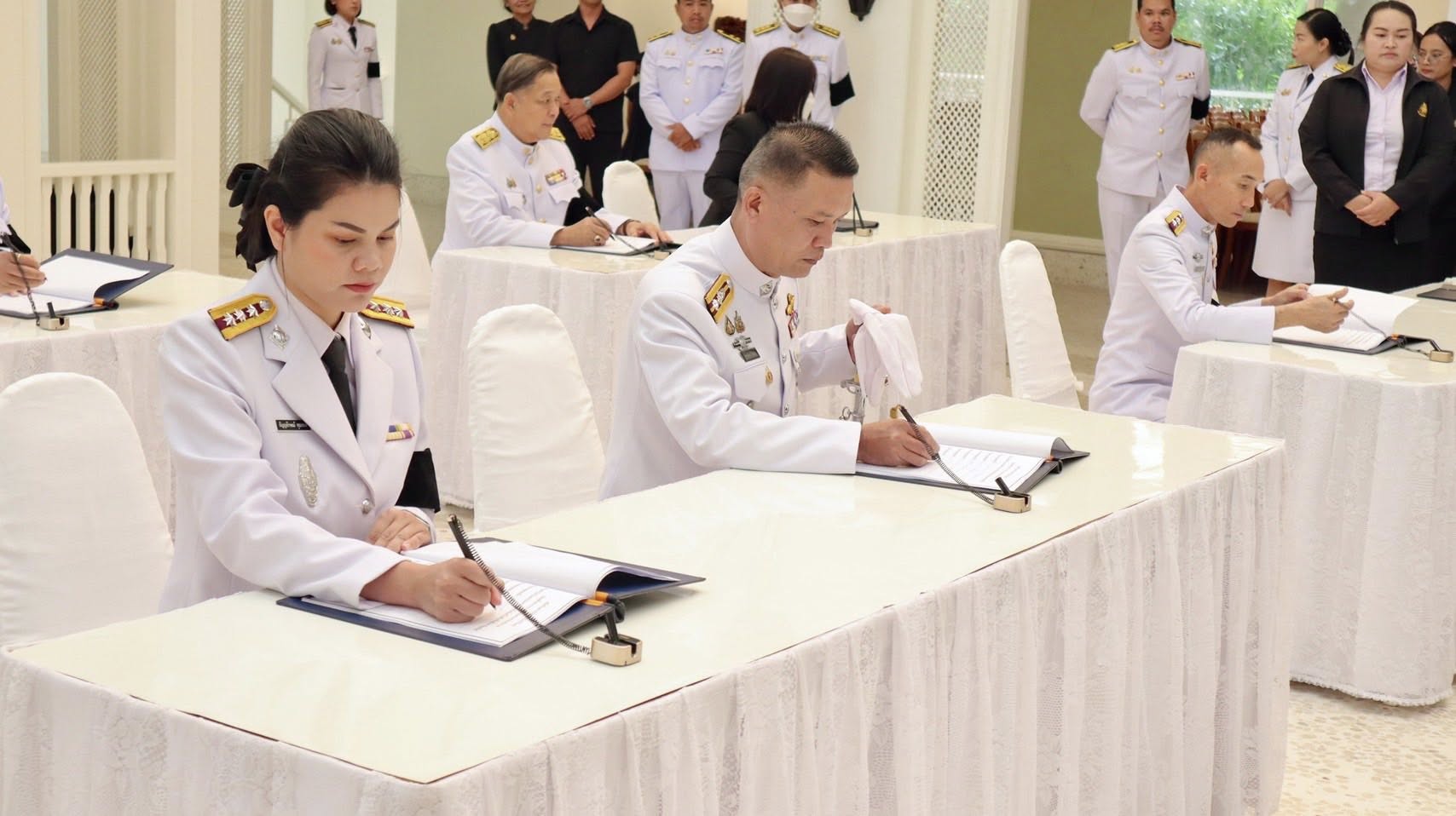 ข่าวกิจกรรมภายในหน่วยข่าวภารกิจของผู้บังคับบัญชา พิธีลงนามถวายความอาลัย ณ อาคารพระราชทานเลี้ยง พระตำหนักภูพานราชนิเวศน์ 6 พฤศจิกายน 2025 Jahjah Sorakrai พ.ต.อ.วุทธยา สิงห์กิ้ง ผกก.ตชด.23 มอบหมายให้ พ.ต.ท.พชรเดช ไชยทะ นายตำรวจนิเทศ(สบ3) กก.ตชด.23 เป็นผู้แทนหน่วยฯ พร้อมข้าราชการตำรวจระดับชั้นสัญญาบัตร จำนวน 5 นาย พิธีลงนามถวายความอาลัย ณ อาคารพระราชทานเลี้ยง พระตำหนักภูพานราชนิเวศน์ โดยมี นายชูศักดิ์ รู้ยิ่ง ผู้ว่าราชการจังหวัดสกลนคร ประธานในพิธีฯ Share.