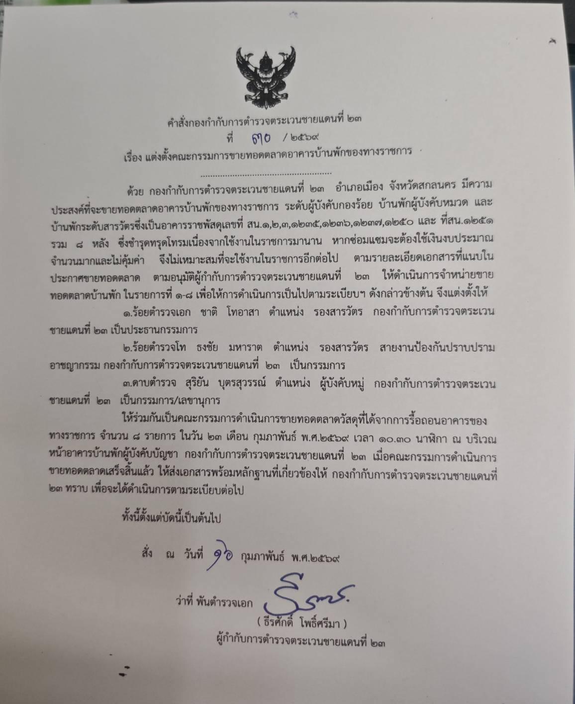 ข่าวประชาสัมพันธ์จัดซื้อจัดจ้าง คำสั่งกองกำกับการตำรวจตระเวนชายแดนที่23 30/2569 เรื่้องแต่งตั้งคณะกรรมการขายทอดตลาดอาคารบ้านพักของทางราชการ 17 กุมภาพันธ์ 2026 อนุชา แวงน้อย Share.